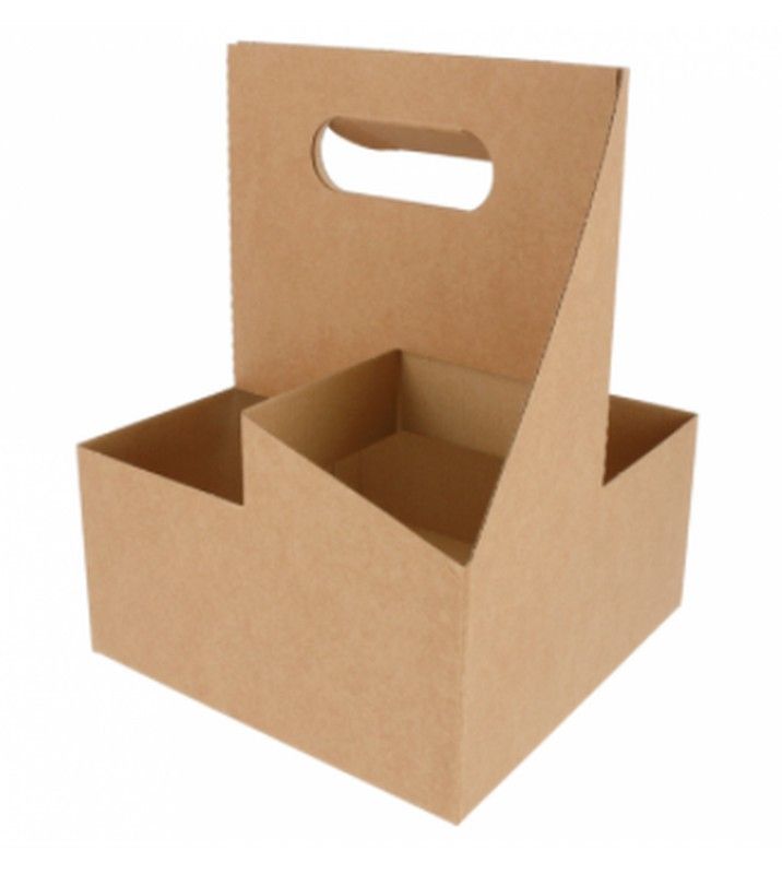 Cajitas de carton natural Kraft, microcanal, resistentes al peso y la humedad, poseen un asa por la que se puede transportar hasta cuatro vasos comodamente. Se utiliza para transportar cafe , infusiones u otros a oficinas o empresas. Utilizadas mayormente por bares, restaurantes, comercios take away, food truck.