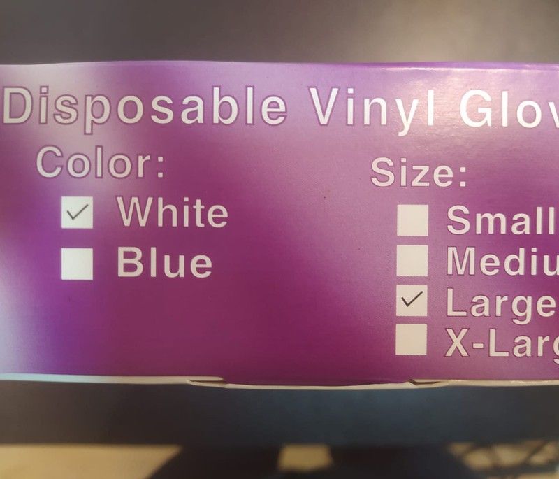 10 cajas de 100 unidades de Guantes de Vinilo blancos.